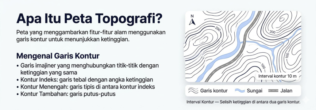 Kontur Indeks: Garis kontur tebal yang dilengkapi angka ketinggian.