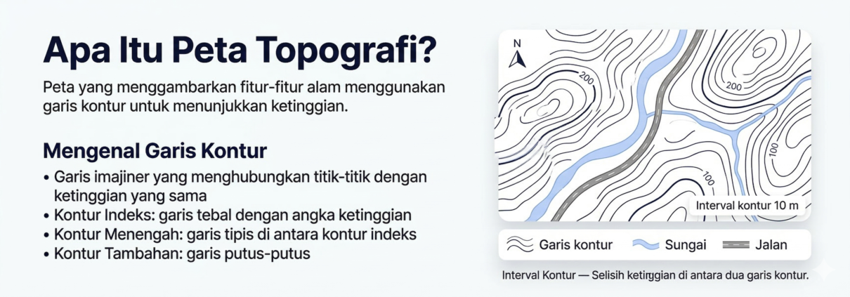 Membaca peta topografi dan kontur adalah keterampilan penting dalam survei dan pemetaan. Dengan memahami jenis-jenis garis kontur, skala, serta simbol pada peta, Anda dapat menganalisis medan dengan lebih baik, merancang jalur survei yang aman, dan menghasilkan data topografi yang akurat.
